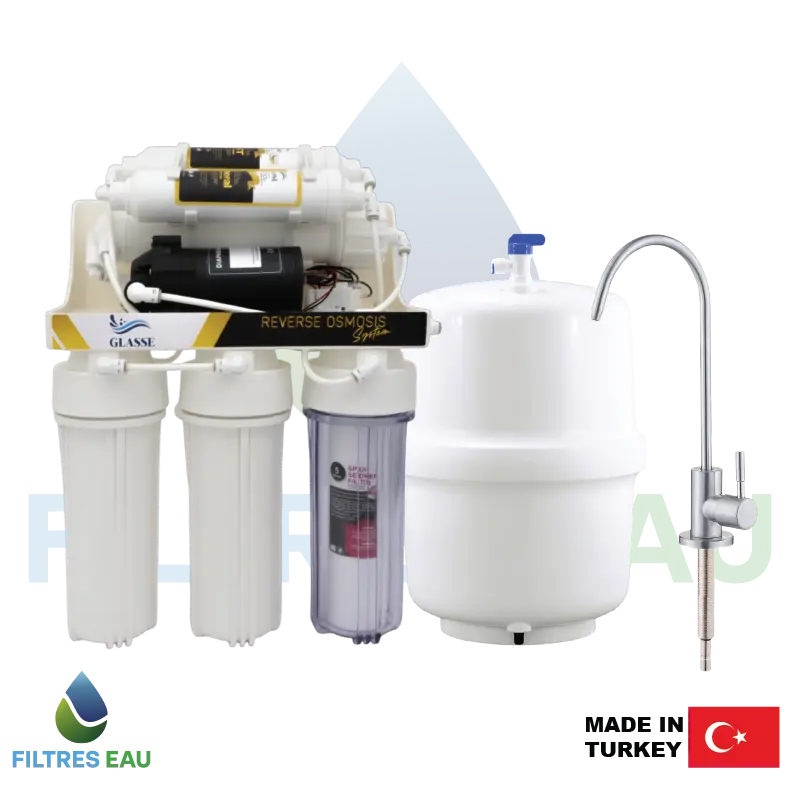 Le GLASSE OPEN CASE 6 Étapes est une solution de purification d’eau fiable et pratique. Son design ouvert permet un accès direct aux filtres, facilitant le remplacement et la maintenance. Grâce à la technologie Osmose Inverse (RO), il élimine efficacement les sédiments, le chlore, les métaux lourds et jusqu’à 99 % des contaminants, garantissant une eau pure et agréable au goût.